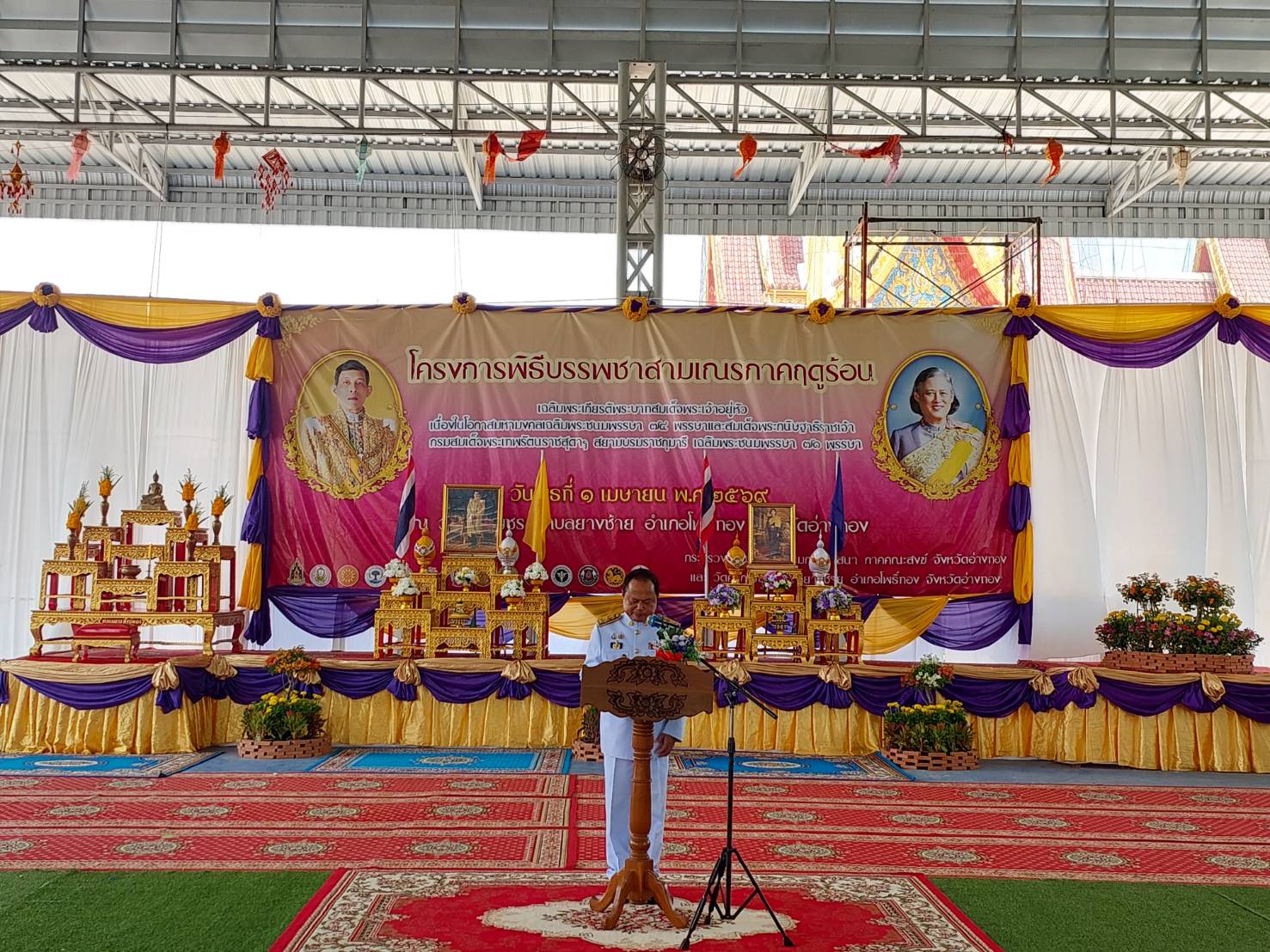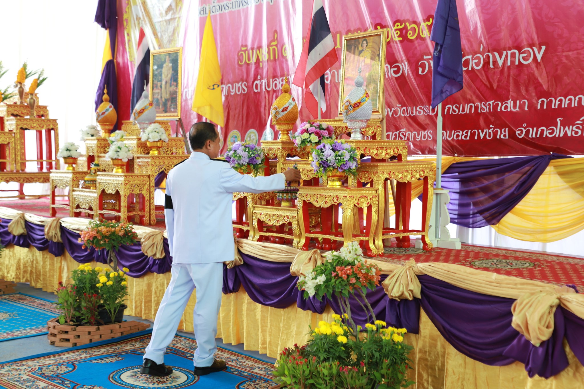 ร่วมโครงการบรรพชาสามเณรภาคฤดูร้อนเฉลิมพระเกียรติพระบาทสมเด็จพระเจ้าอยู่หัว เนื่องในโอกาสมหามงคลเฉลิมพระชนมพรรษา 74 พรรษา และเฉลิมพระเกียรติสมเด็จพระกนิษฐาธิราชเจ้า กรมสมเด็จพระเทพรัตนราชสุดาฯ สยามบรมราชกุมารี เนื่องในโอกาสเฉลิมพระชนมพรรษา 71 พรรษา ณ อาคารอเนกประสงค์ (อาคารโดมสัมมาทิฏฐิ) วัดศรีกุญชร ต.ยางช้าย อ.โพธิ์ทอง จ.อ่างทอง นายนที มนตริวัต ผู้ว่าราชการจังหวัดอ่างทอง มอบหมายให้ นายไพบูลย์ ศุภบุญ รองผู้ว่าราชการจังหวัดอ่างทอง เป็นประธานโครงการบรรพชาสามเณรภาคฤดูร้อนเฉลิมพระเกียรติพระบาทสมเด็จพระเจ้าอยู่หัว เนื่องในโอกาสมหามงคลเฉลิมพระชนมพรรษา 74 พรรษา และเฉลิมพระเกียรติสมเด็จพระกนิษฐาธิราชเจ้า กรมสมเด็จพระเทพรัตนราชสุดาฯ สยามบรมราชกุมารี เนื่องในโอกาสเฉลิมพระชนมพรรษา 71 พรรษา โดยพระสุวรรณวชิราทร เจ้าคณะจังหวัดอ่างทอง เจ้าอาวาสวัดอ่างทองวรวิหาร เป็นประธานฝ่ายสงฆ์ พร้อมด้วยศาล อัยการ ปลัดจังหวัดอ่างทอง ท้องถิ่นจังหวัดอ่างทอง หัวหน้าส่วนราชการ นายอำเภอโพธิ์ทอง ข้าราชการ ประชาชนเข้าร่วมพิธี