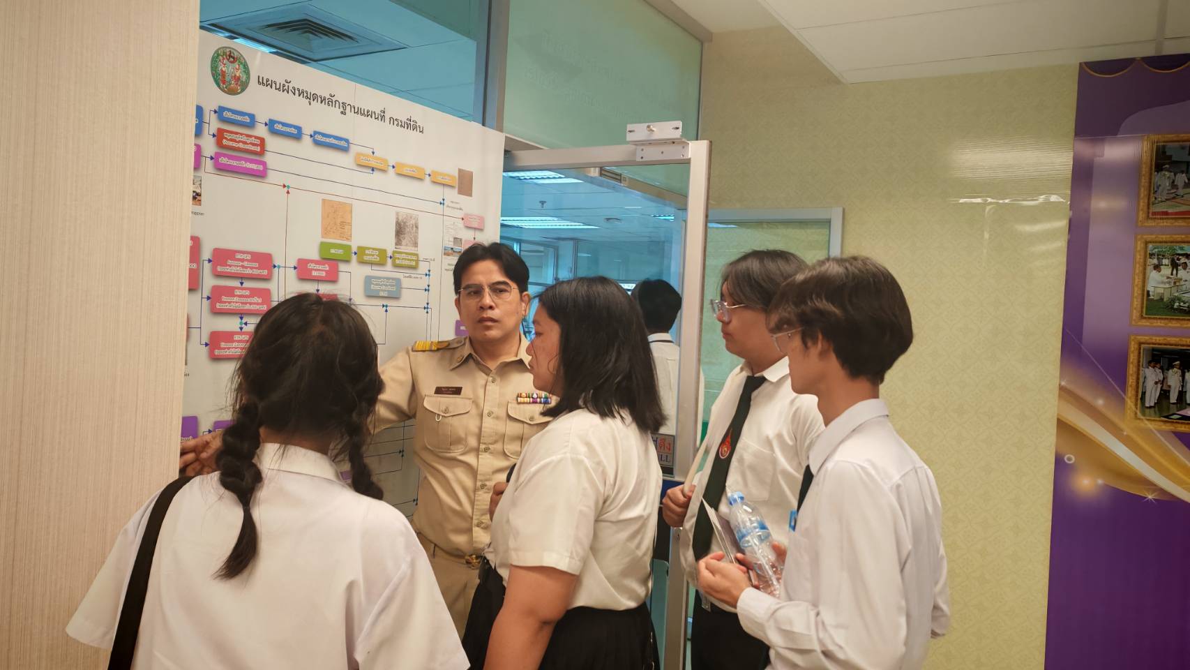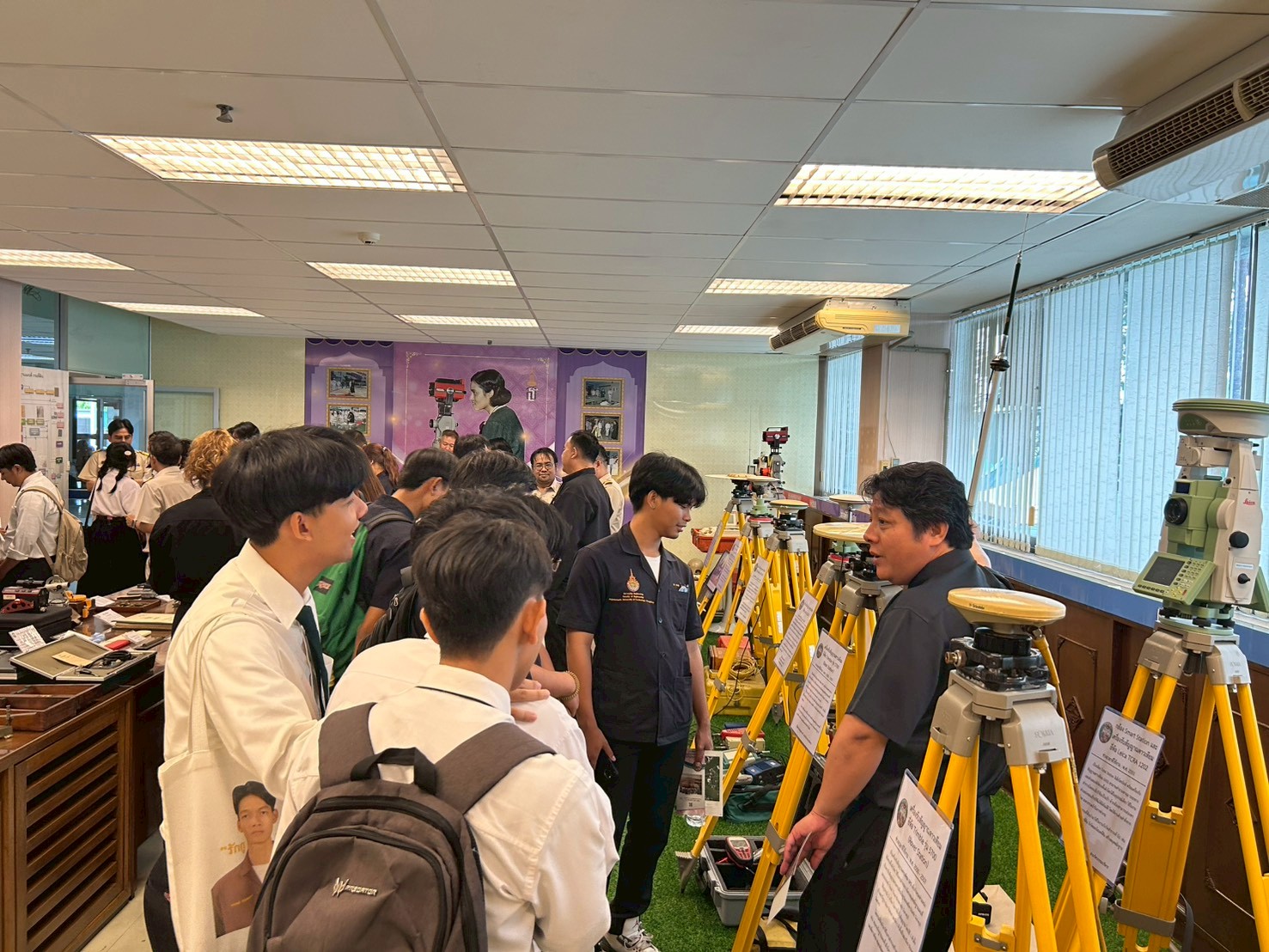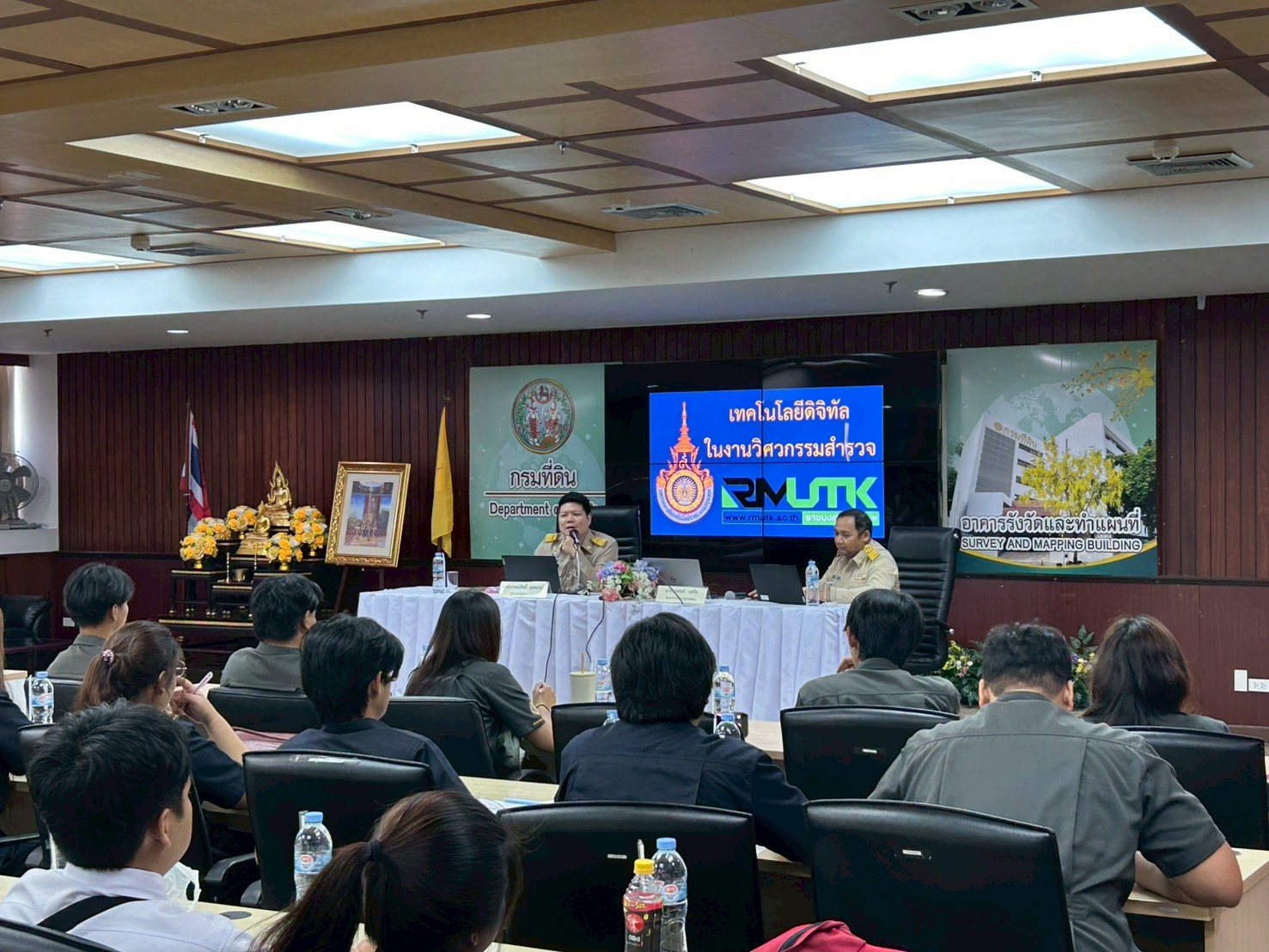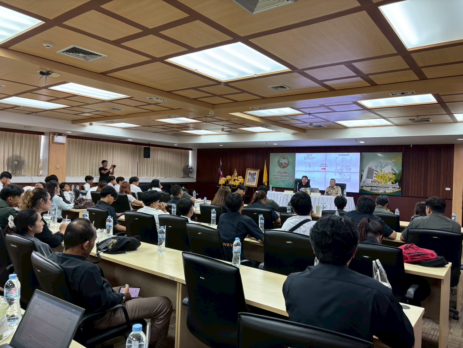 [th] => เมื่อวันที่ 23 กุมภาพันธ์ 2569 : นางอนุช กาญจนาลัย ผู้เชี่ยวชาญด้านการทำแผนที่ภาพถ่าย ให้การต้อนรับคณะศึกษาดูงานจากสาขาวิชาวิศวกรรมสำรวจ คณะวิศวกรรมศาสตร์ มหาวิทยาลัยเทคโนโลยีราชมงคลกรุงเทพ จำนวน ๖๐ ท่าน ซึ่งการศึกษาดูงานในครั้งนี้ ประกอบไปด้วยการบรรยาย ในหัวข้อ “การสำรวจเฉพาะแปลง” และหัวข้อ “เทคโนโลยีสำหรับงานรังวัดของกรมที่ดิน” โดยวิทยากรจากกองเทคโนโลยีทำแผนที่ และการเยี่ยมชมศูนย์เรียนรู้การรังวัดและทำแผนที่ ซึ่งเป็นแหล่งเรียนรู้ที่เกี่ยวข้องกับงานรังวัดและทำแผนที่ตั้งแต่สมัยอดีต