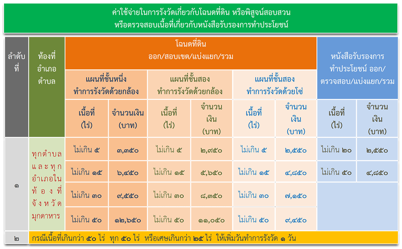 ๑.งานบริหารงานช่าง  มีหน้าที่ความรับชอบในการพิจารณาปัญหางานรังวัดของสำนักงานที่ดินจังหวัด สาขา อำเภอ และกิ่งอำเภอ งานสารบรรณด้านการรังวัด จัดทำบัญชีนัดรังวัด จัดให้เจ้าของที่ดินชี้ระวางแผนที่ รับเรื่องรังวัด ค้นหาหลักฐานแผนที่ จำลองแผนที่ต่างๆ ประกอบคำขอ ประมาณการค่าใช้จ่ายในการรังวัด จัดหาและเบิกจ่ายหมุดหลักเขต ออกหนังสือแจ้งเรื่องการรังวัดชี้แนวเขต จัดทำงบเดือน งบปี เกี่ยวกับงานในฝ่ายรังวัด ดูแล รักษา และควบคุมการเบิกจ่ายวัสดุครุภัณฑ์ช่าง จัดเก็บและบริการหลักฐานการรังวัด แผนที่ต้นร่าง ระวางแผนที่การออกโฉนดที่ดิน ระวางแผนที่รูปถ่ายทางอากาศ และหลักฐานการคำนวณ จัดเก็บข้อมูลการรังวัดและทำแผนที่ด้วยเครื่องคอมพิวเตอร์