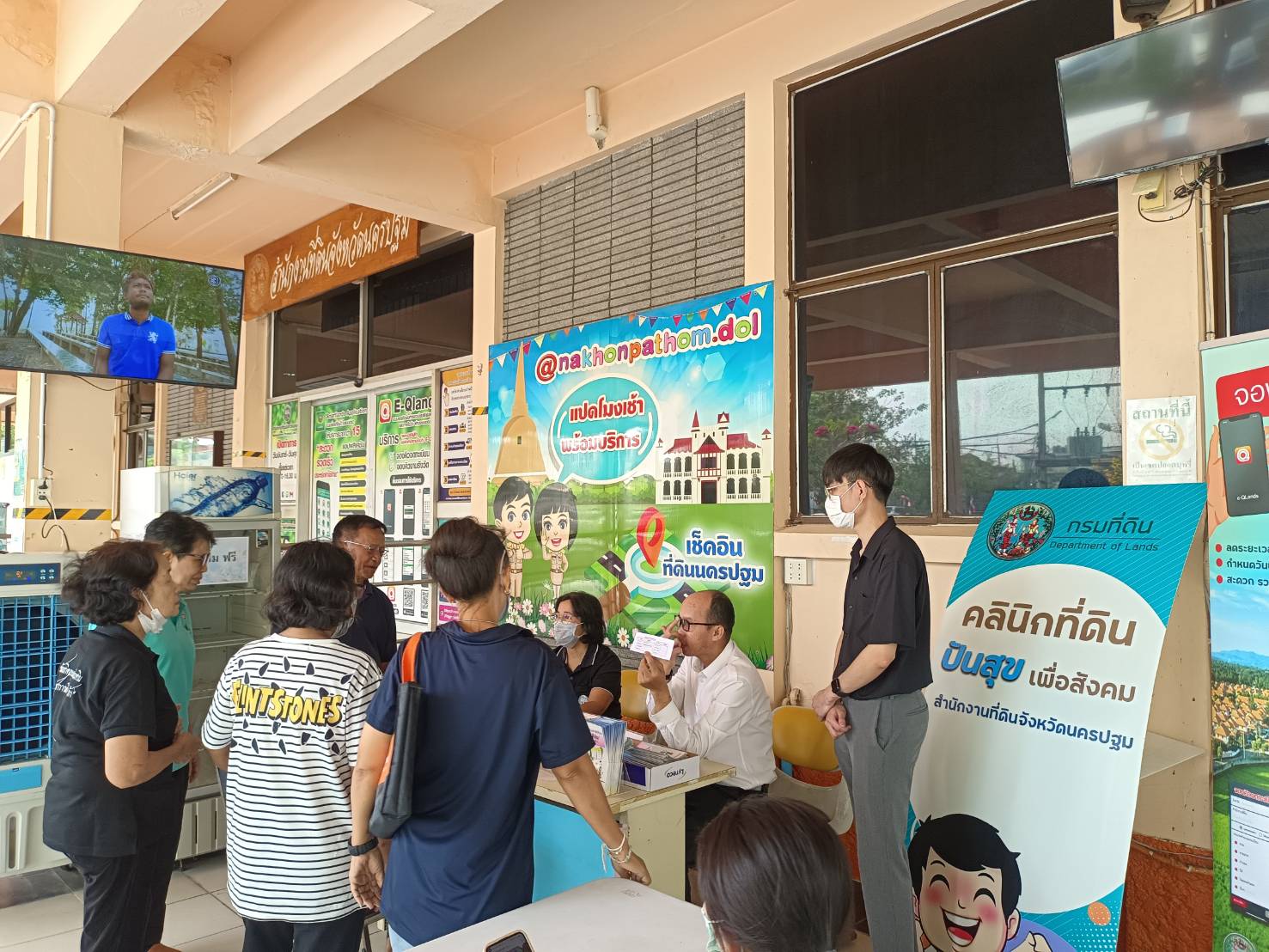ได้มอบหมายให้นายเรวัต พลรักษา หัวหน้ากลุ่มงานวิชาการที่ดิน พร้อมด้วยบุคลากรเจ้าหน้าที่ จัดจุดบริการให้ความรู้เกี่ยวกับที่ดิน (คลินิกที่ดินปันสุข) ณ บริเวณลานที่พักประชาชน สำนักงานที่ดินจังหวัดนครปฐม
