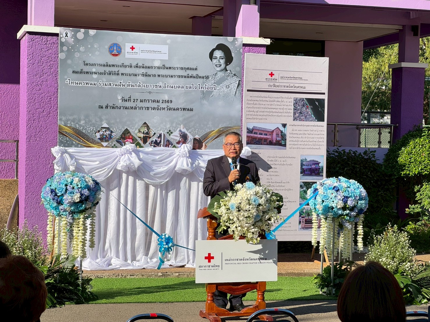 [text] => วันที่ 27 มกราคม 2569 เวลา 9.00 น. ว่าที่พันตรี อดิศักดิ์ น้อยสุวรรณ ผู้ว่าราชการจังหวัดนครพนม เป็นประธานพิธีเปิดโครงการเฉลิมพระเกียรติ เพื่อน้อมถวายเป็นพระราชกุศลแด่ สมเด็จพระนางเจ้าสิริกิติ์ พระบรมราชินีนาถ พระบรมราชชนนีพันปีหลวง ในการนี้ นายธเนศ ชาตะวราหะ เจ้าพนักงานที่ดินจังหวัดนครพนม ได้เข้าร่วมพิธีเปิดดังกล่าว ณ บริเวณสำนักงานเหล่ากาชาดจังหวัดนครพนม อ.เมือง จ.นครพนม
