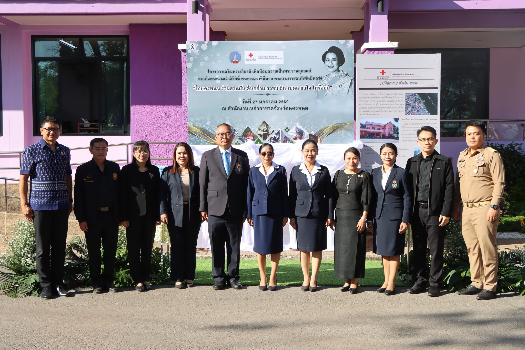 วันที่ 27 มกราคม 2569 เวลา 9.00 น. ว่าที่พันตรี อดิศักดิ์ น้อยสุวรรณ ผู้ว่าราชการจังหวัดนครพนม เป็นประธานพิธีเปิดโครงการเฉลิมพระเกียรติ เพื่อน้อมถวายเป็นพระราชกุศลแด่ สมเด็จพระนางเจ้าสิริกิติ์ พระบรมราชินีนาถ พระบรมราชชนนีพันปีหลวง ในการนี้ นายธเนศ ชาตะวราหะ เจ้าพนักงานที่ดินจังหวัดนครพนม ได้เข้าร่วมพิธีเปิดดังกล่าว ณ บริเวณสำนักงานเหล่ากาชาดจังหวัดนครพนม อ.เมือง จ.นครพนม