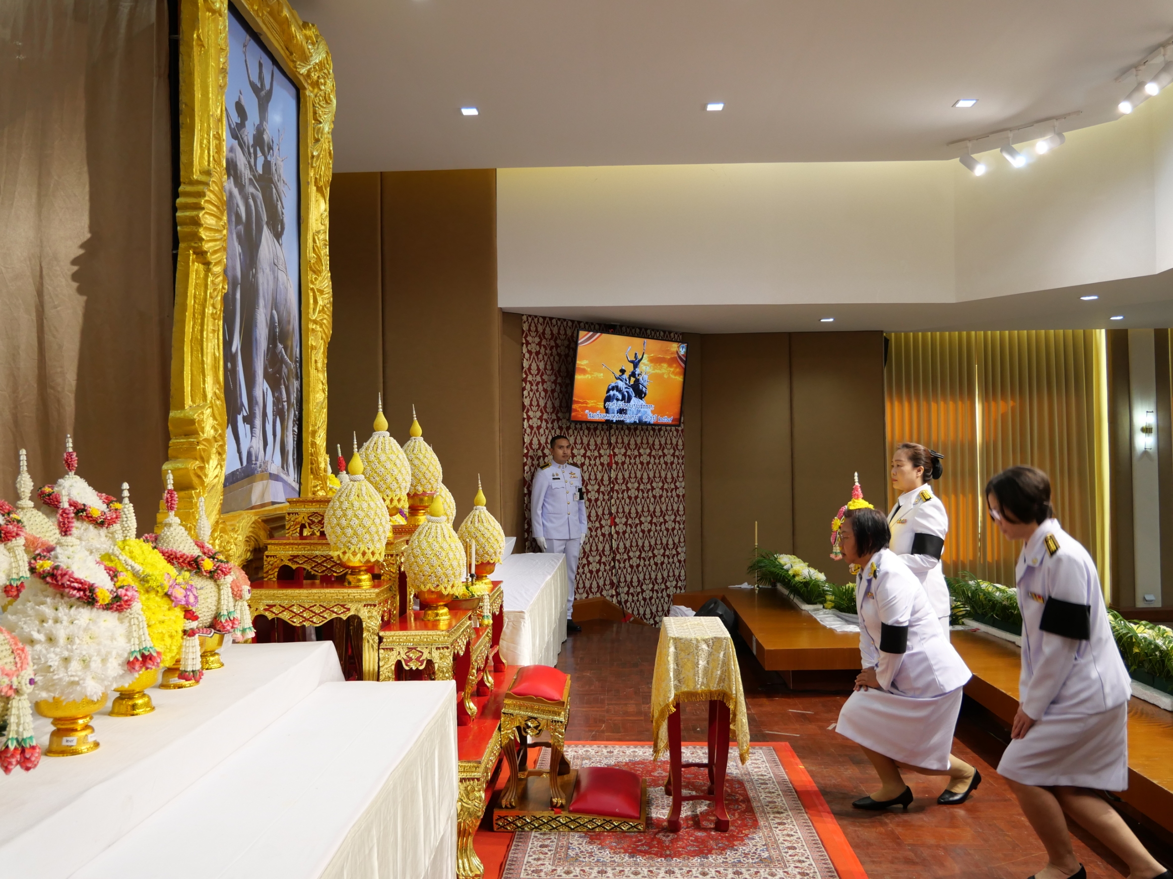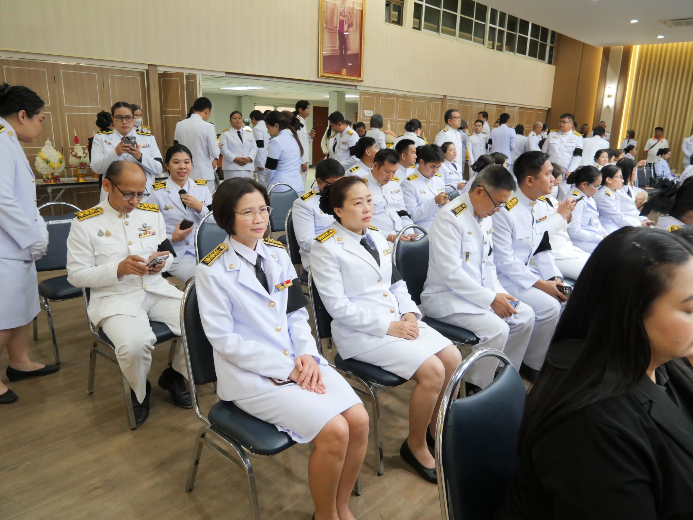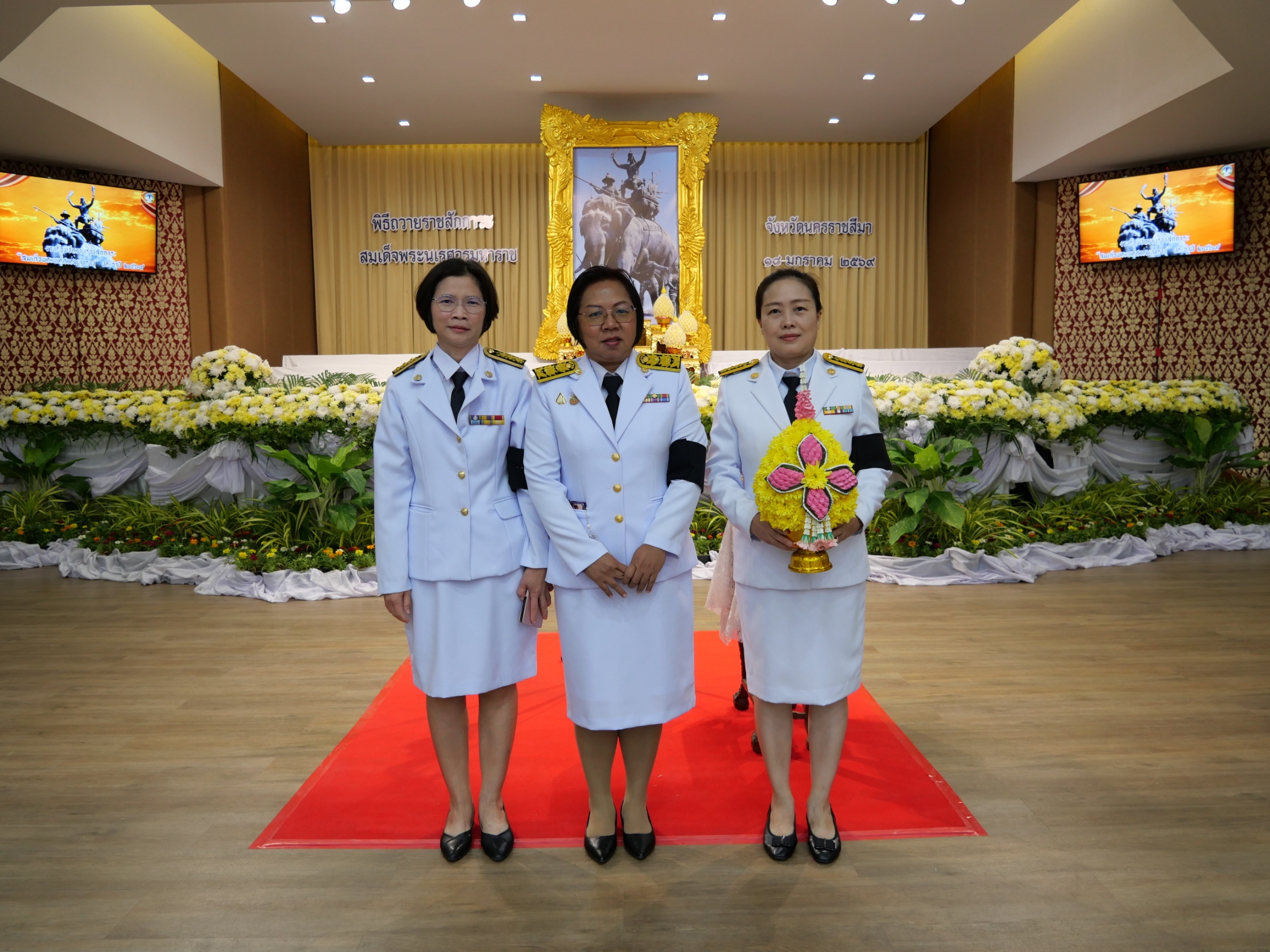 [th] => พิธีวางพุ่มดอกไม้ถวายราชลักการะ หน้าพระบรมสาทิสลักษณ์สมเด็จพระนเรศวรมหาราช ณ หอประชุมเปรมติณสูลานนท์ ศาลากลางจังหวัดนครราชสีมา