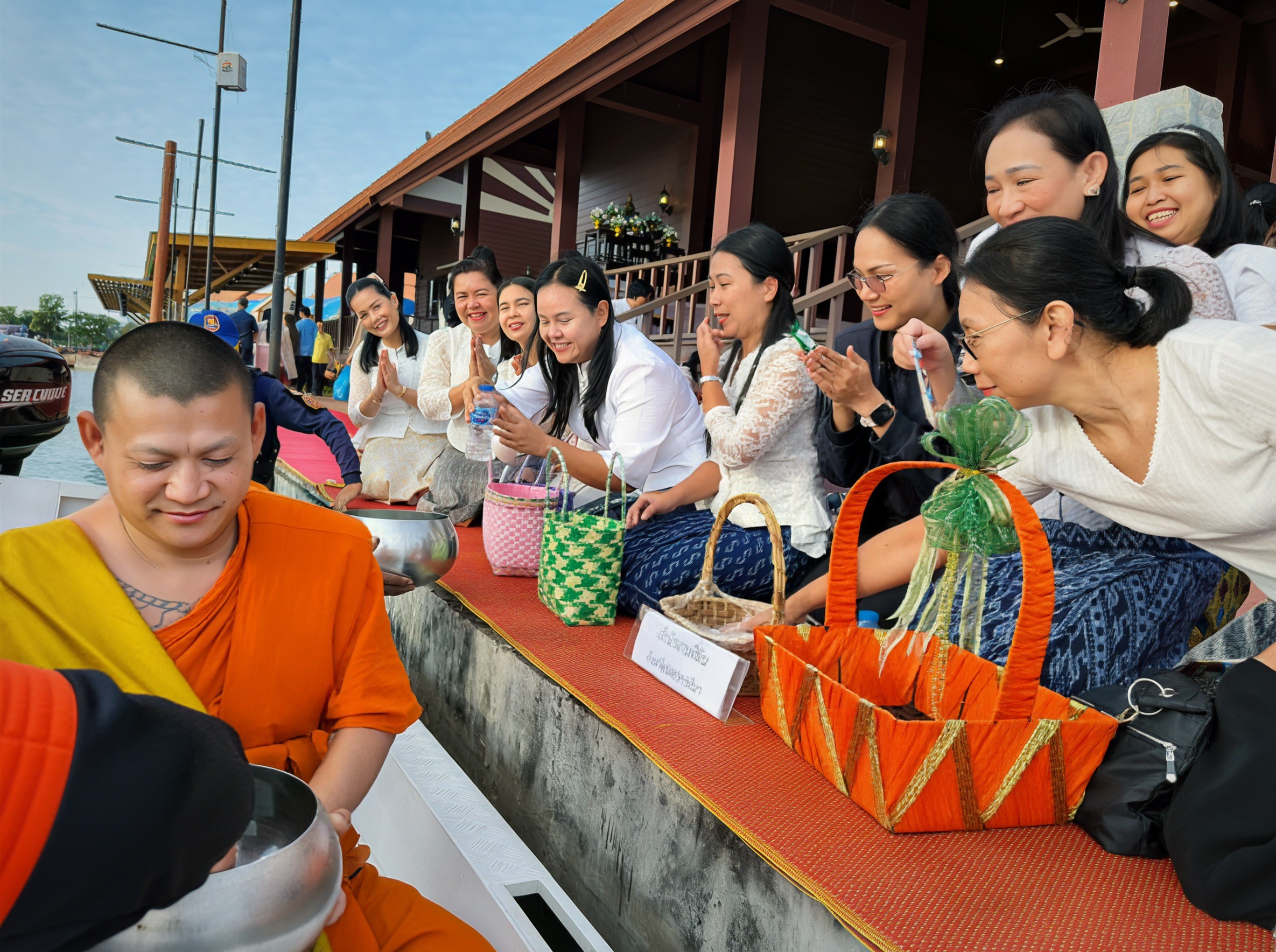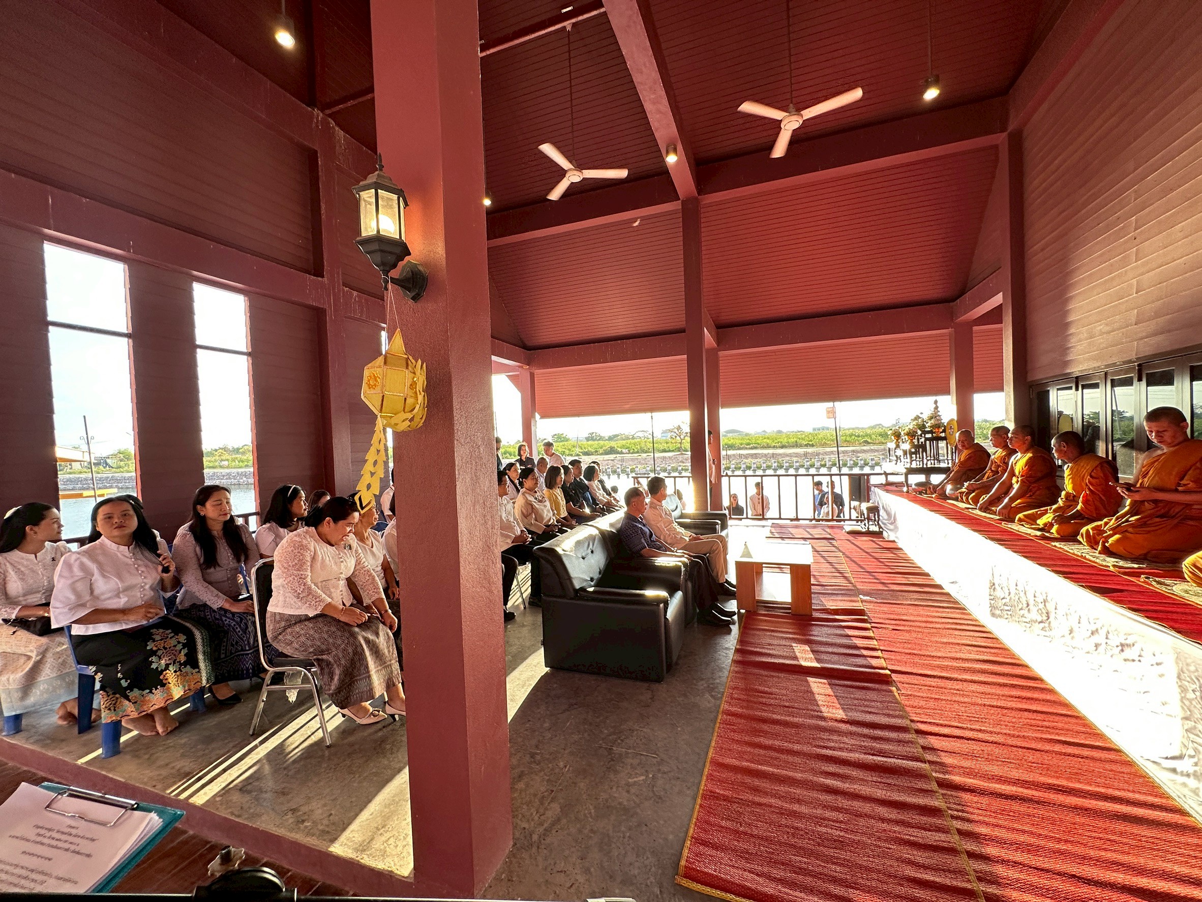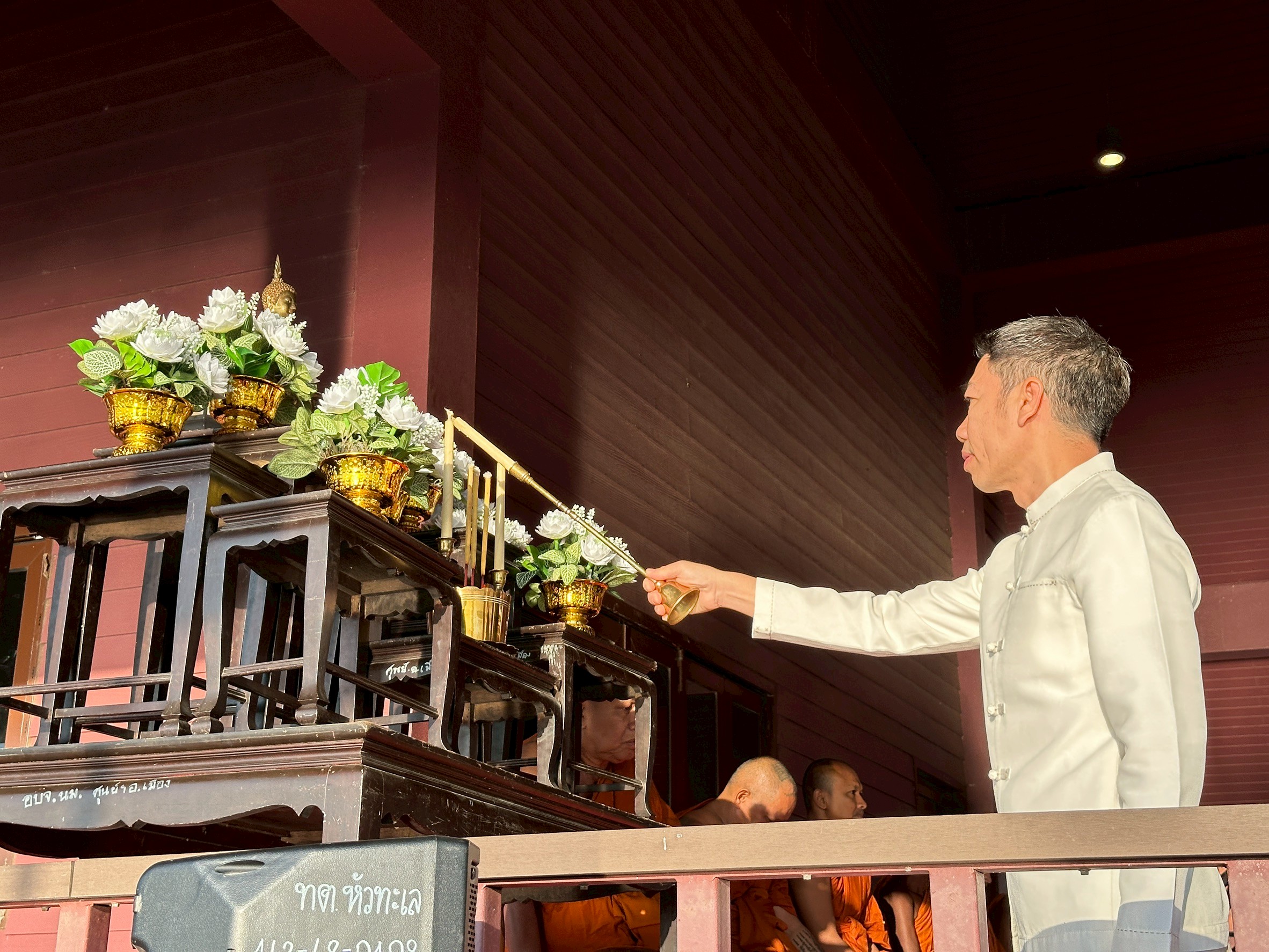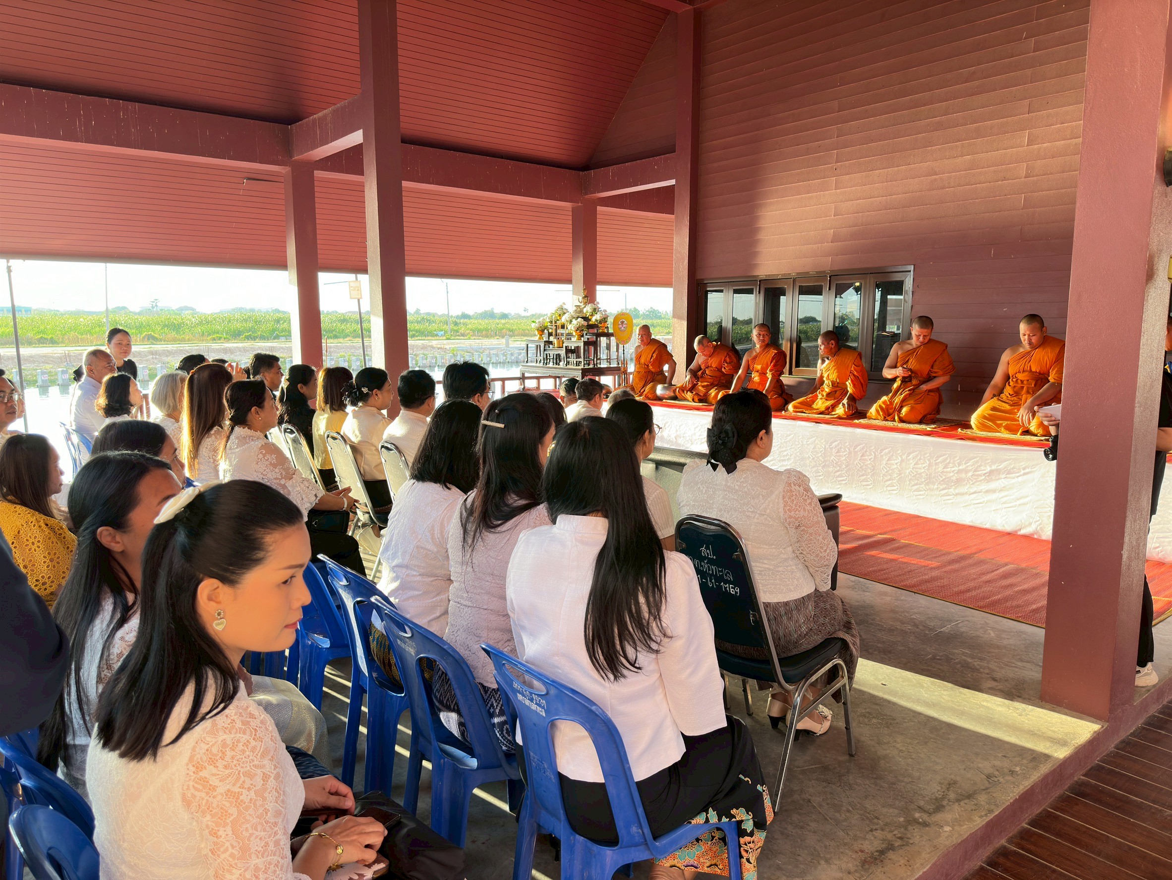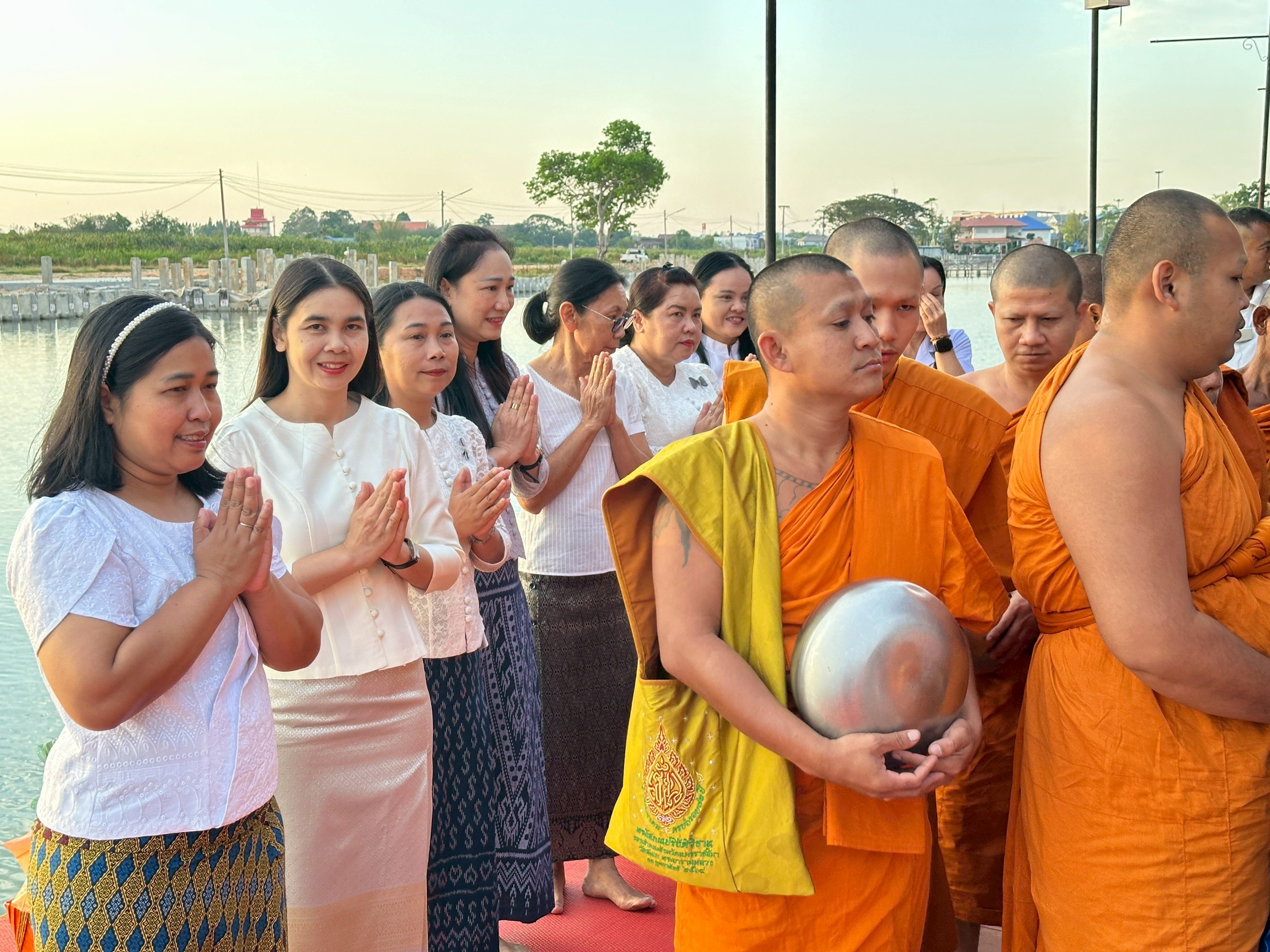 [th] => นางกรรจนา ต้นพรหม หัวหน้าฝ่ายอำนวยการ พร้อมคณะเจ้าหน้าที่ เข้าร่วมกิจกรรมทำบุญตักบาตรสัญจร “โคราชนุ่งผ้าไทย นั่งสาดตักบาตรวันพุธ” เพื่อรณรงค์ให้ส่วนราชการ ภาครัฐ ภาคเอกชน สถานศึกษา ตลอดจนประชาชนในจังหวัดนครราชสีมา ได้สืบสานและทำนุบำรุงพระพุทธศาสนา