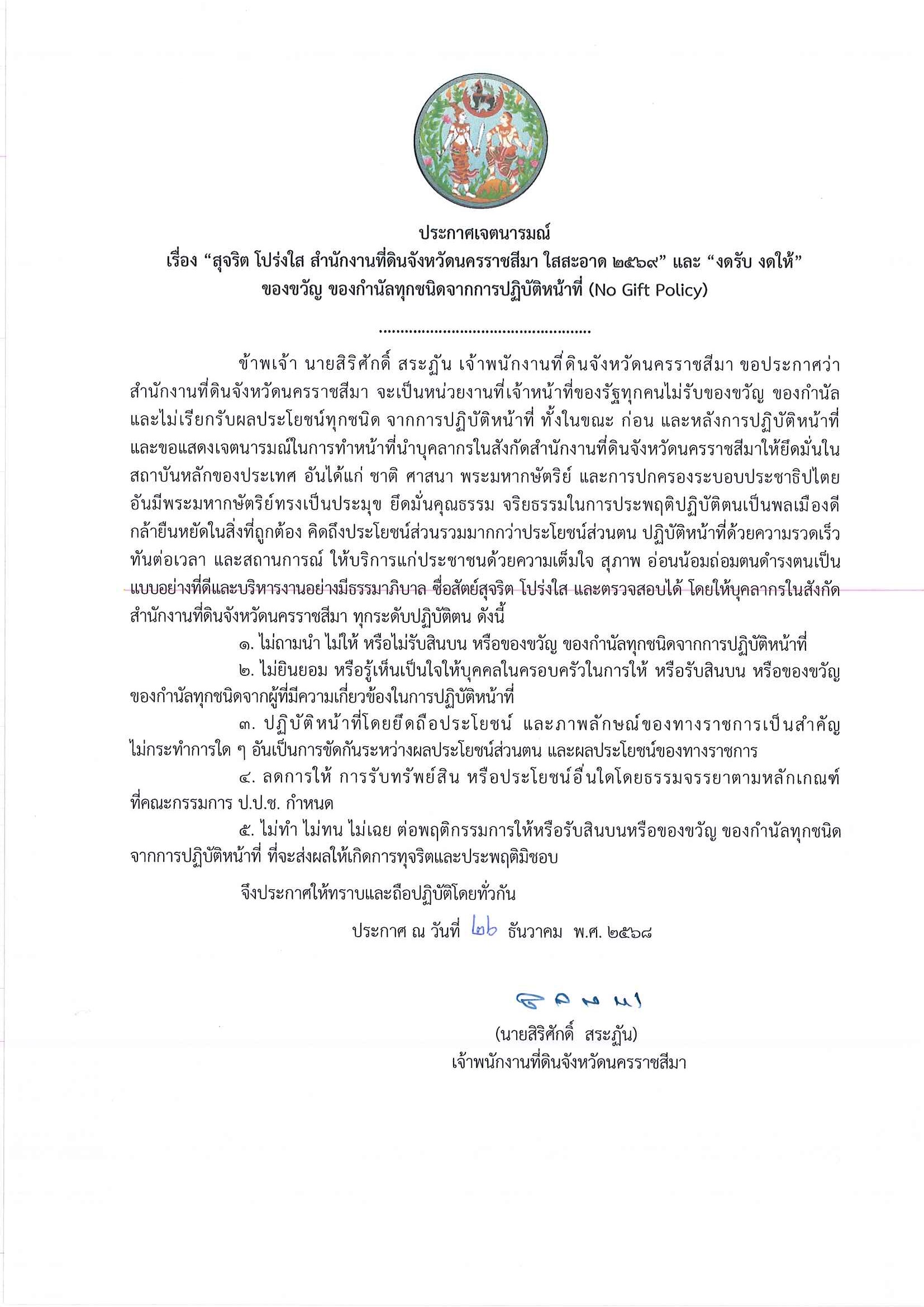 ยินดีต้อนรับสู่เว็บไซต์ สำนักงานที่ดินจังหวัดนครราชสีมา