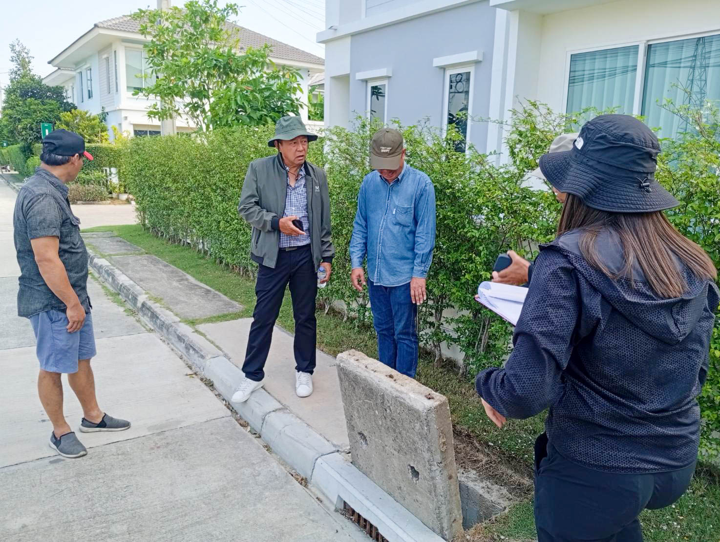 [th] => นายปฏิพัทธ์ ค้าธัญญะ เจ้าพนักงานที่ดินจังหวัดนนทบุรี สาขาบางใหญ่ พร้อมด้วยคณะอนุกรรมการ และเจ้าหน้าที่ ลงพื้นที่ตรวจสอบระบบสาธารณูปโภคในโครงการจัดสรรที่ดิน เพื่อประกอบเป็นหลักฐานในการจัดตั้งนิติบุคคลหมู่บ้านจัดสรร โครงการ “พฤกษาวิลเลท 46 (The Plnt คลองถนน)”
