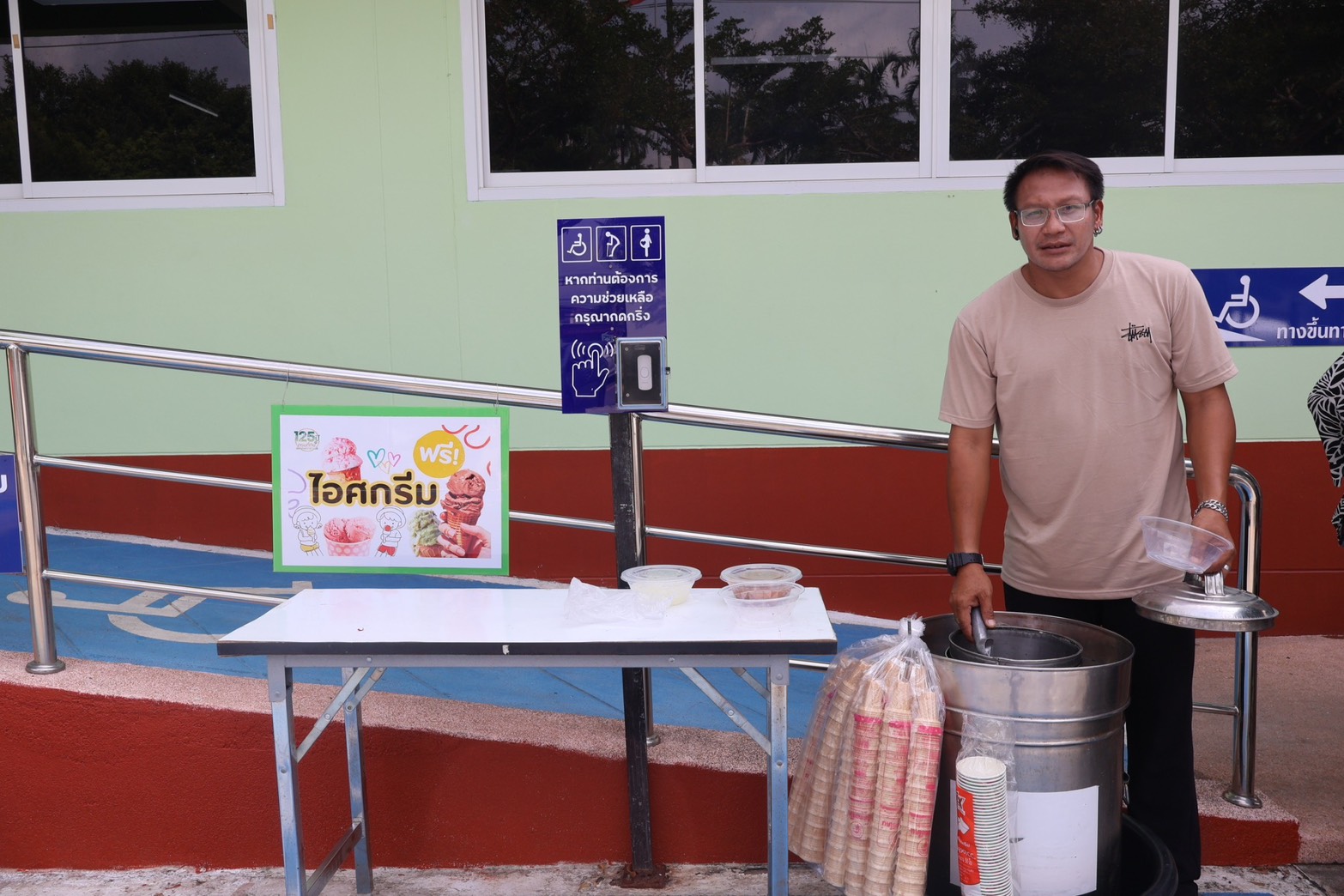 ทั้งนี้ได้แจกก๋วยเตี๋ยว ไอศกรีม และขนมให้กับผู้มารับบริการด้วย