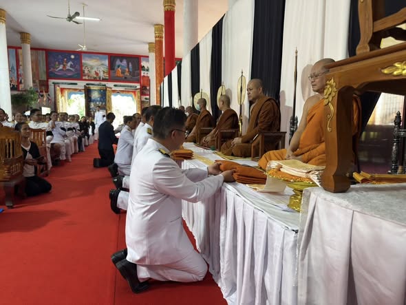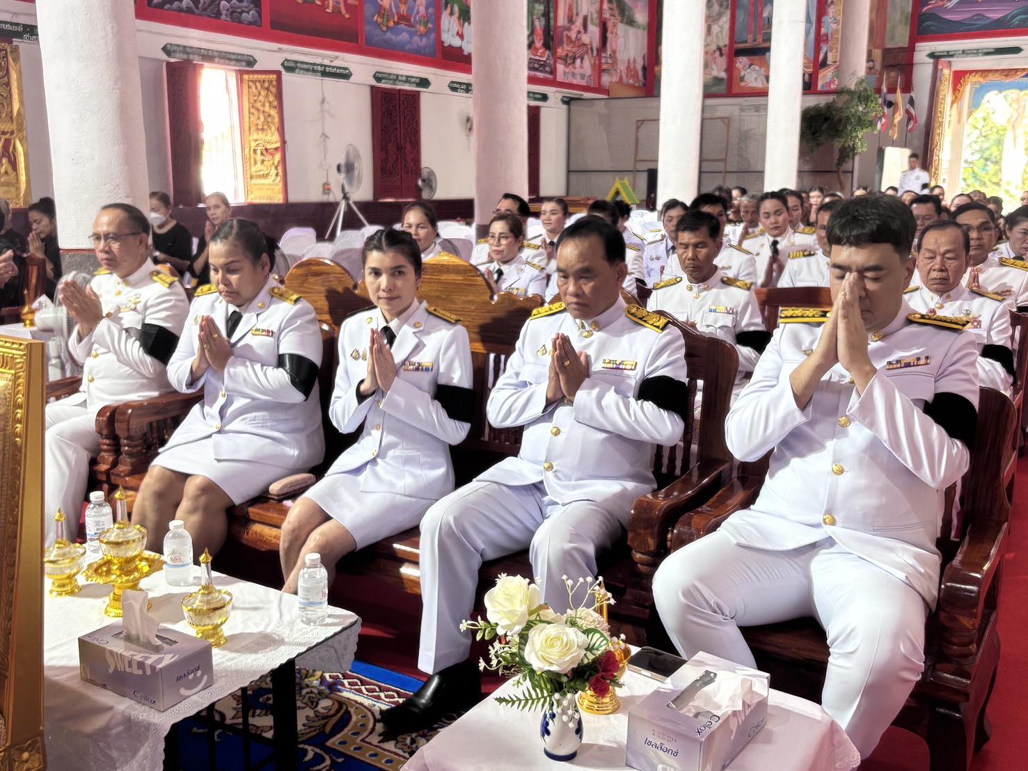 นายนภนต์ มีทรัพย์ เจ้าพนักงานที่ดินจังหวัดอุบลราชธานี สาขาวารินชำราบ พร้อมด้วยข้าราชการในสังกัด ร่วมพิธีบำเพ็ญกุศล สวดพระอภิธรรม เจริญจิตภาวนา เพื่ออุทิศถวายพระราชกุศลแด่สมเด็จพระนางเจ้าสิริกิติ์ พระบรมราชินีนาถ พระบรมราชชนนีพันปีหลวง ทึ่ศาลาการเปรียญ วัดแสนสำราญ อำเภอวารินชำราบ จังหวัดอุบลราชธานี