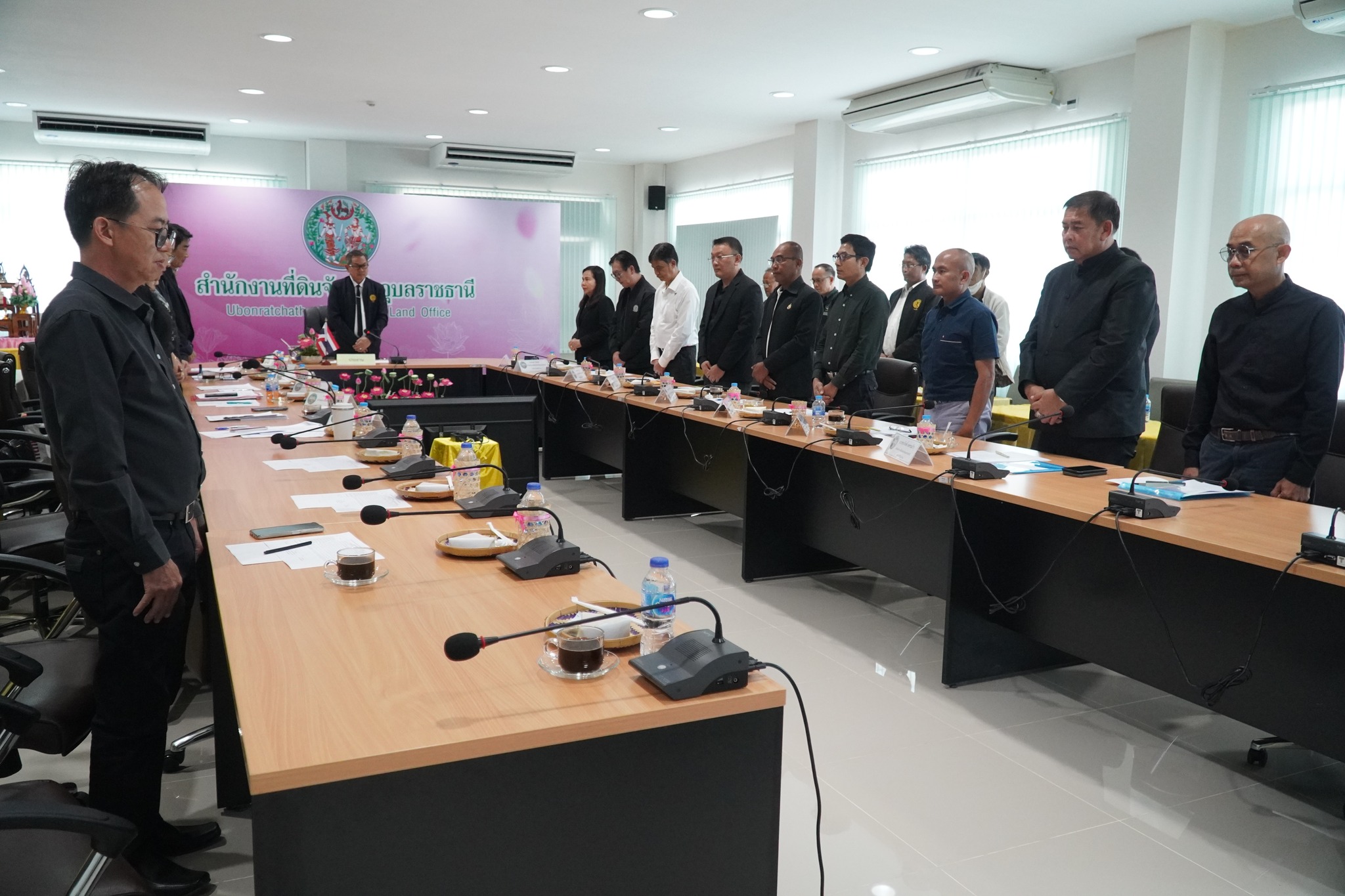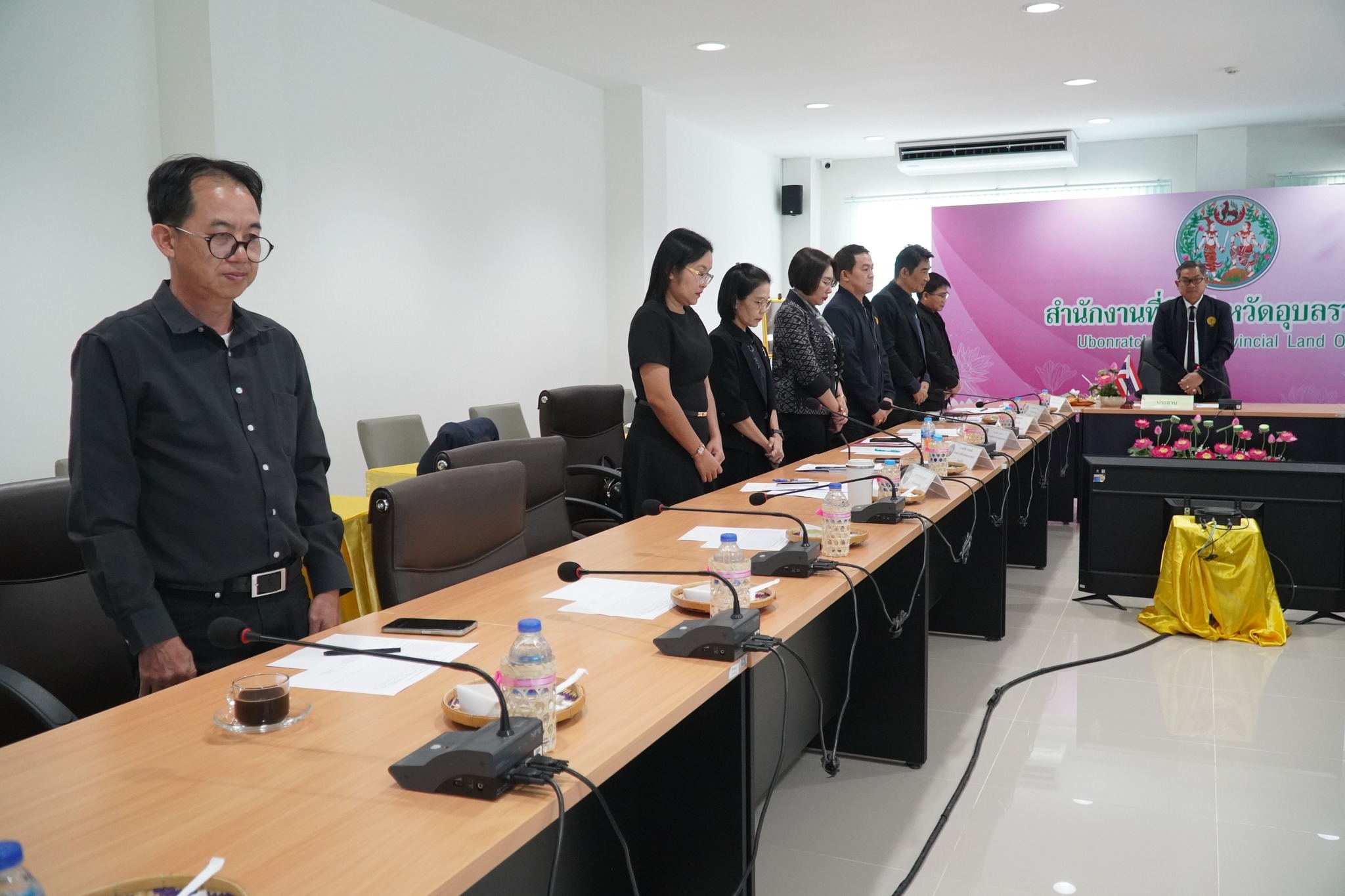 สำนักงานที่ดินจังหวัดอุบลราชธานี จัดการประชุมเจ้าพนักงานที่ดินจังหวัดสาขา ผู้อำนวยการศูนย์เดินสำรวจออกโฉนดที่ดินฯ หัวหน้ากลุ่มงานวิชาการที่ดินและหัวหน้าฝ่าย สำนักงานที่ดินจังหวัดอุบลราชธานี ครั้งที่ 8/2568 ประจำเดือนธันวาคม 2568 ก่อนเริ่มการประชุม มีการ ยืนสงบนิ่ง เพื่อรำลึกในพระมหากรุณาธิคุณอันหาที่สุดมิได้แด่ สมเด็จพระนางเจ้าสิริกิติ์ พระบรมราชินีนาถ พระบรมราชชนนีพันปีหลวง จากนั้นเป็นวาระการประชุม และเป็นการติดตามผลการดำเนินงานตามยุทธศาสตร์ของสำนักงานที่ดินจังหวัดอุบลราชธานี ในรอบเดือนที่ผ่านมา ในการนี้นายณรงค์ เมยไธสง เจ้าพนักงานที่ดินจังหวัดอุบลราชธานี เป็นประธานการประชุม ณ ห้องประชุมสำนักงานที่ดินจังหวัดอุบลราชธานี