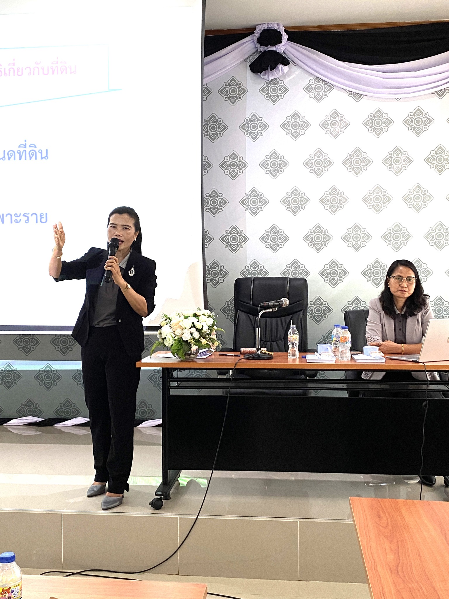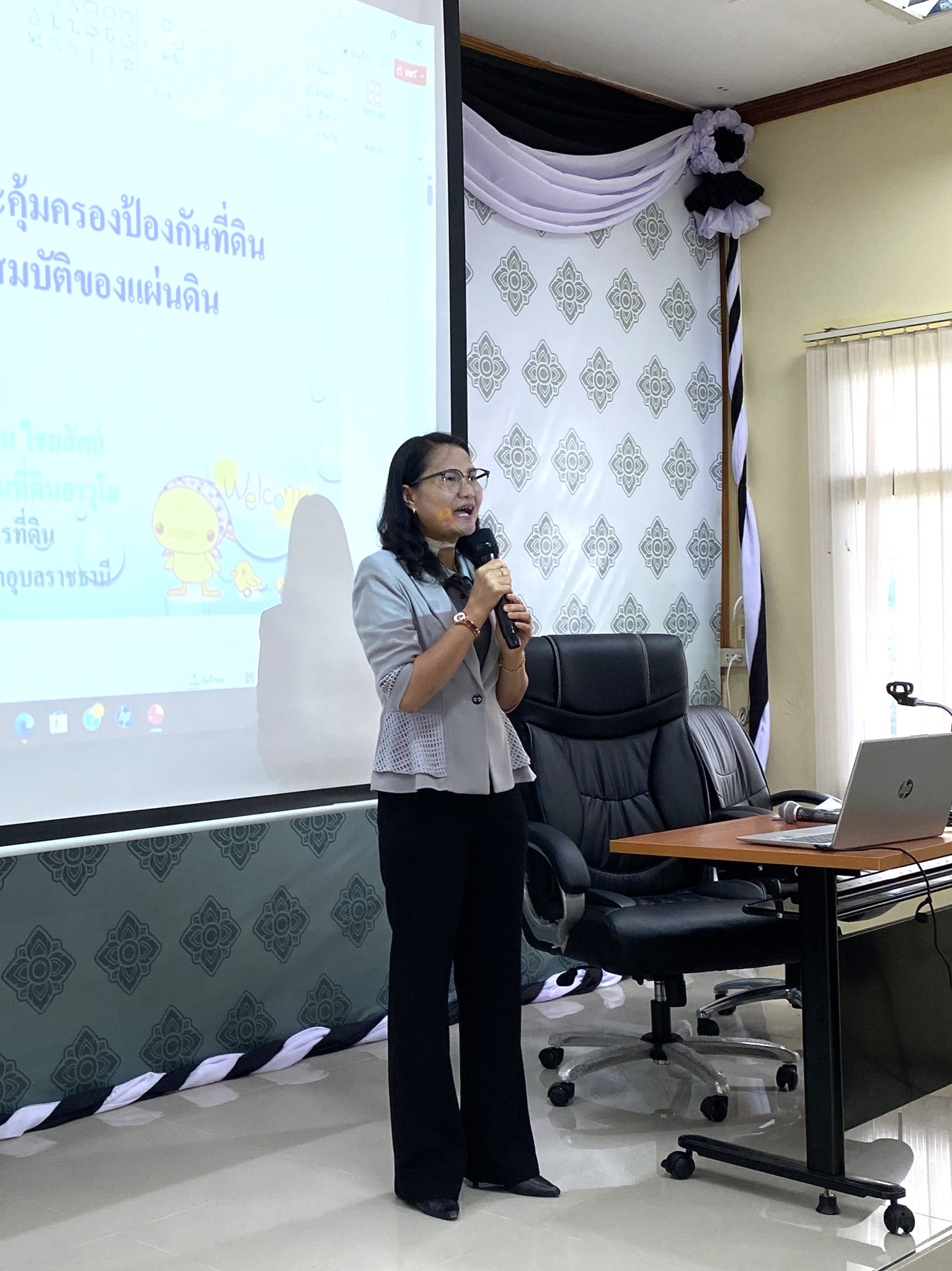 นายณรงค์ เมยไธสง เจ้าพนักงานที่ดินจังหวัดอุบลราชธานี มอบหมายให้นางชัชชญา ปวรีย์ นักวิชาการที่ดินชำนาญการพิเศษ นางสาววงเดือน ไชยสัตย์ เจ้าพนักงานที่ดินอาวุโส และนางสุภาเพชรอำนาจวงษ์ เจ้าพนักงานที่ดินอาวุโส เป็นวิทยากรให้ความรู้ด้านกฎหมายที่ดิน ทรัพย์สิน ซื้อขาย มรดก การทำนิติกรรมเกี่ยวกับที่ดิน ค่าธรรมเนียม การดูแลรักษาและคุ้มครองป้องกันที่ดินอันเป็นสาธารณสมบัติของแผ่นดิน เพื่อสร้างความรู้ ความเข้าใจในด้านกฎหมาย เบื้องต้นแก่ผู้นำชุมชนและประชาชนในพื้นที่ ณ ห้องประชุมเทศบาลตำบลปทุม อำเภอเมืองอุบลราชธานี จังหวัดอุบลราชธานี
